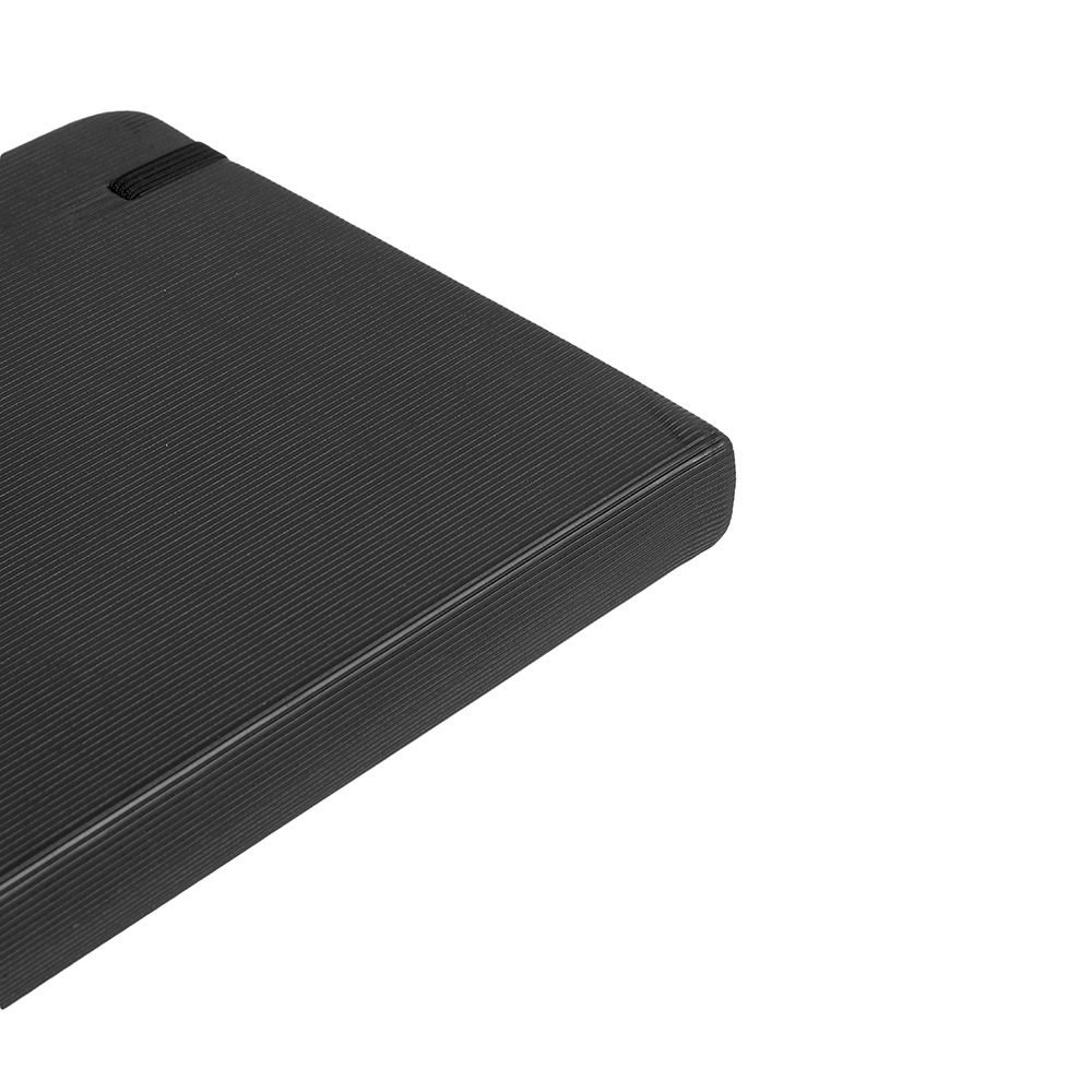 Agenda 2026 com capa dura em poliuretano (PU), marcador de páginas em cetim, porta-canetas e elástico para fechamento. Possui páginas dedicadas a dados pessoais, calendários de 2026 a 2028, lista de contatos e tabelas de pesos e medidas.