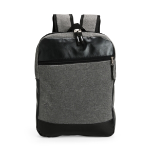 Bolsa confeccionada em poliéster mesclado com PVC, resistente à água e sem fechamento principal. Possui dois compartimentos externos: um bolso em tela de nylon e outro com fechamento em zíper. Dispõe ainda de alça transversal ajustável.