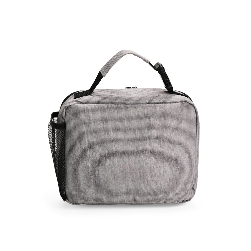 Descrição: Bolsa térmica em poliéster impermeável com fechamento em zíper e capacidade de até 6 litros. Possui revestimento térmico interno em PEVA atóxico e compartimento em tela de nylon. Apresenta bolso frontal com zíper e bolso telado com elástico, além de alça de mão com engate rápido.