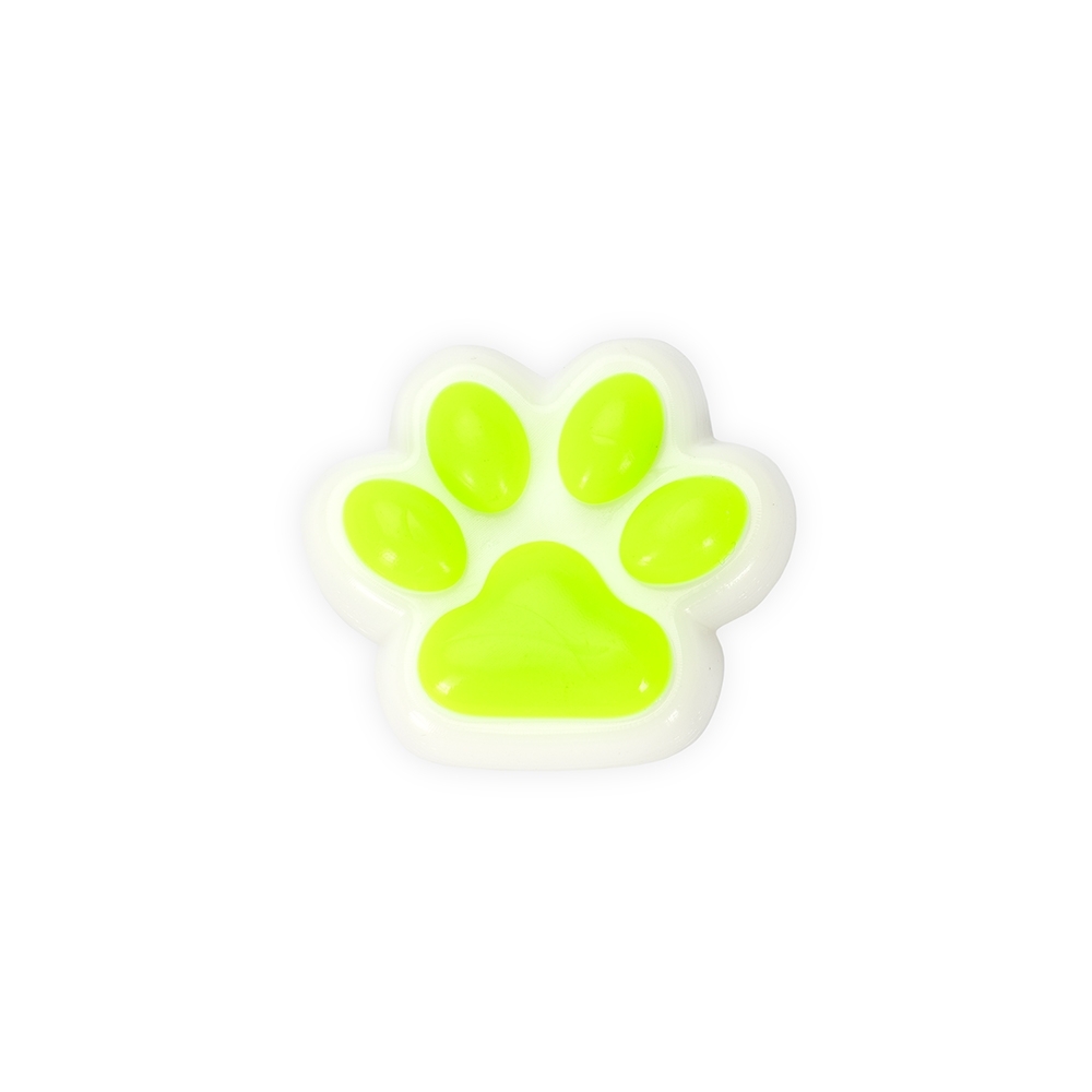 Brinquedo apertável antiestresse feito em borracha termoplástica. Com formato de pata estilizada, possui textura lisa e macia que adere a superfícies planas. Acompanha acessórios em plástico e pelúcia.