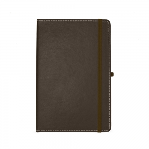 Caderneta de papel couchê, contém aproximadamente 72 folhas amarelas com pauta e 16 folhas sem pauta, marcador de página em cetim, elástico para lacre e compartimento em papel para documentos ou anotações.