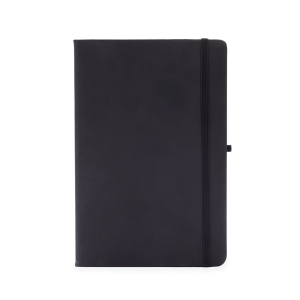 Descrição: Caderneta com capa em couro sintético, suporte elástico para caneta, marca-páginas em fita de cetim e aproximadamente 96 folhas marfim pautadas.