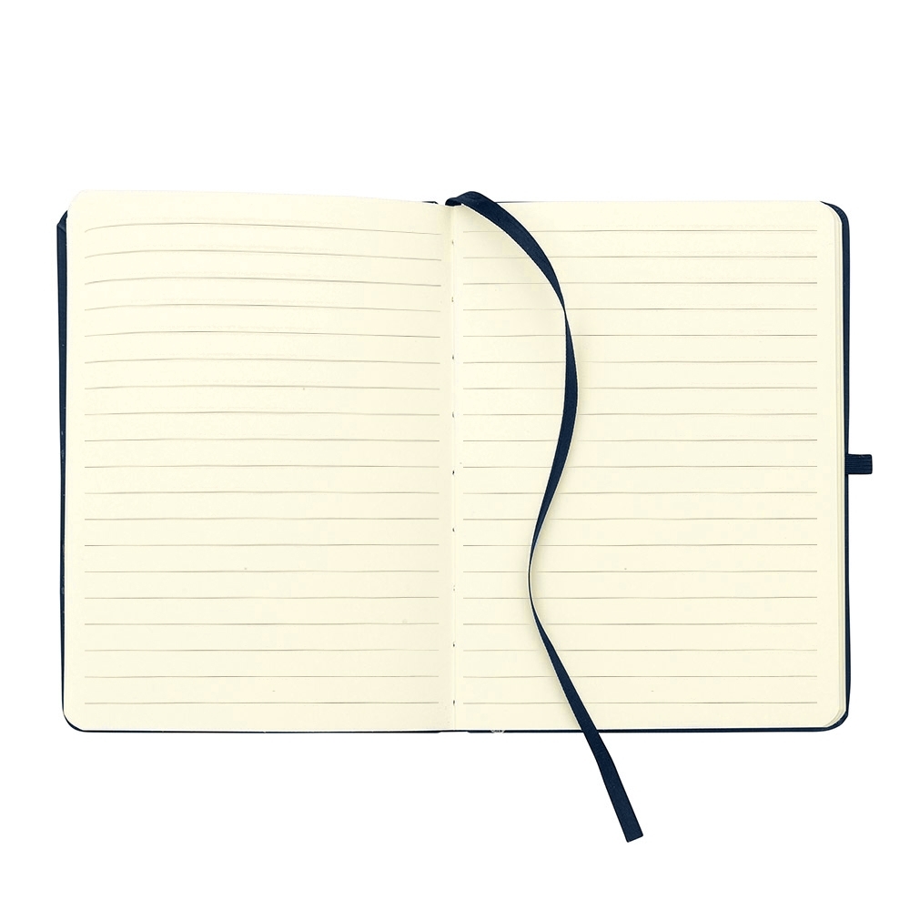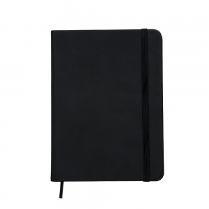 Descrição: Caderneta emborrachada com porta caneta em nylon, marcador de página em cetim e fita elástica para lacre. Contém aproximadamente 80 folhas pardas com pauta.