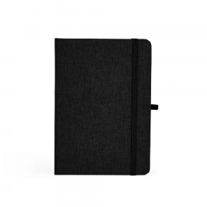 Caderno capa dura em linho e encadernação em Wire-o. Possui aproximadamente 100 folhas brancas, sendo 87 pautadas, uma com calendários de 2024 a 2026, seis destinadas a compromissos diários, cinco quadriculadas e uma para lista de contatos.