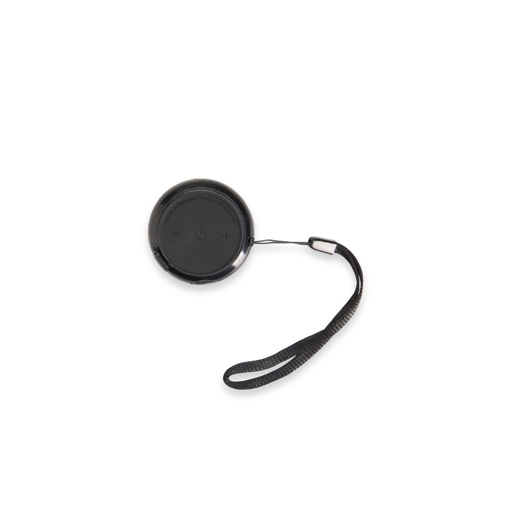 Descrição: Caixa de som compacta em plástico e metal. Possui conexão via Bluetooth e tecnologia TWS, que permite sincronizar duas caixas de som ao mesmo tempo. Conta ainda com entradas para cartão MicroSD e cabo USB-C, iluminação colorida em LED e base antiderrapante com botões para controle das funções. Acompanha cabo USB-C e cordão de nylon.