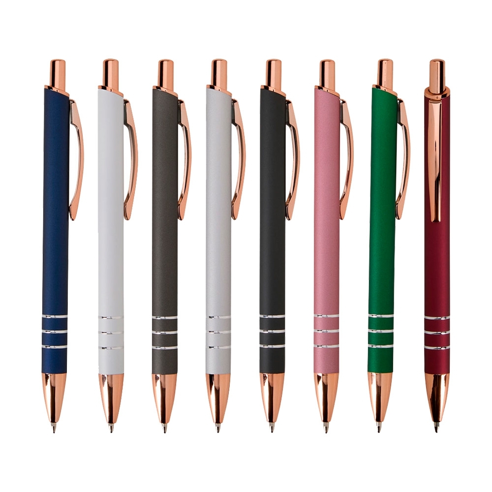 Descrição: Caneta metálica com acionamento por clique e carga esferográfica azul de 1.0mm, uma combinação que oferece pegada leve para uma escrita mais precisa.