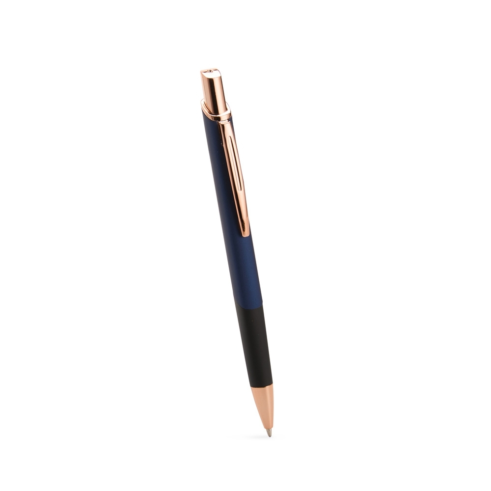 Descrição: Caneta feita inteiramente em metal com acionamento por clique e carga esferográfica azul de 1,0mm.