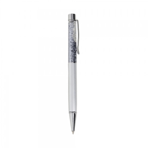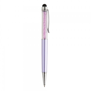 Descrição: Caneta metálica com touch screen e detalhes em cristal, carga esferográfica azul e acionamento por rotação.