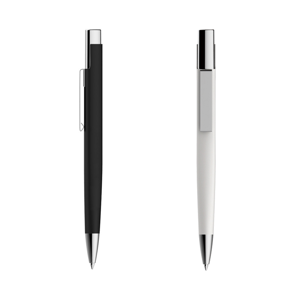 Descrição: Caneta metal triangular de pintura fosca e detalhes em prata. Clip metálico espelhado, aciona por clique.