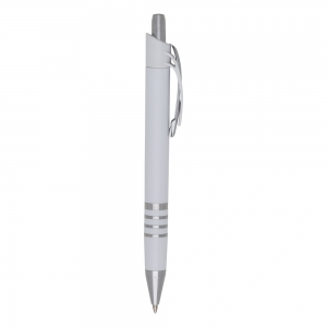 Descrição: Caneta plástica com detalhe strass, carga esferográfica azul 1.0 e acionamento por clique.