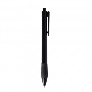 Descrição: Caneta plástica com carga esferográfica azul e acionamento por clique.
