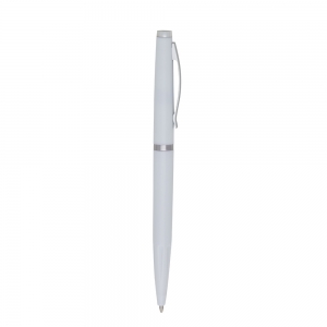 Descrição: Caneta plástica com clip metálico, acionamento por rotação e carga esferográfica azul de 1.0mm.