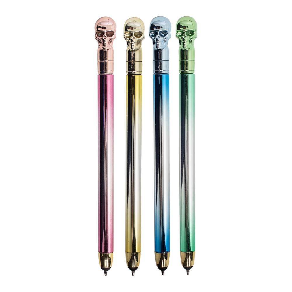 O toque de ousadia que o seu cotidiano precisava está nesta caneta estilizada, decorada com uma caveira em cores vibrantes. Feita de plástico, acionamento por rotação que oferece praticidade, enquanto a carga esferográfica azul de 1mm proporciona uma escrita suave e precisa. Além disso, conta com a funcionalidade touchscreen, permitindo navegação em dispositivos móveis com facilidade. Perfeita para quem busca um acessório único, que combina estilo e versatilidade!