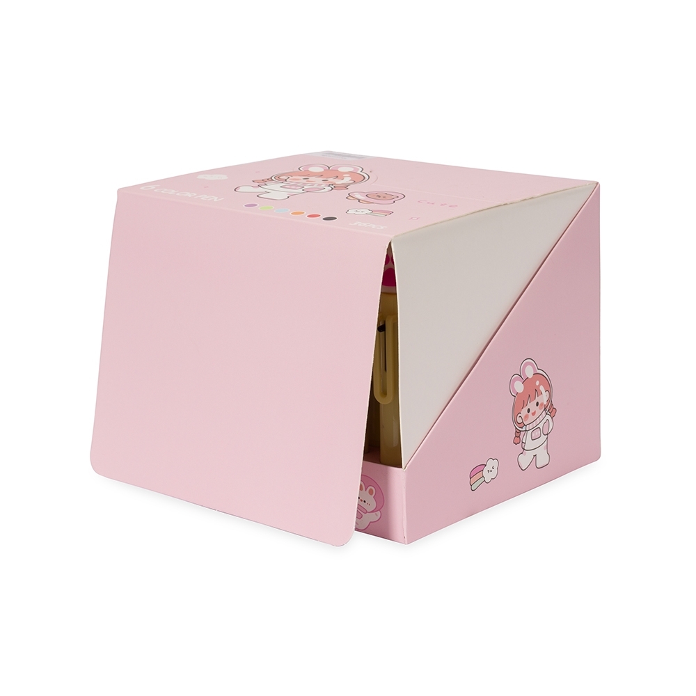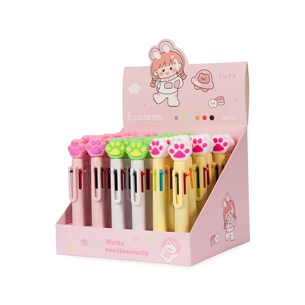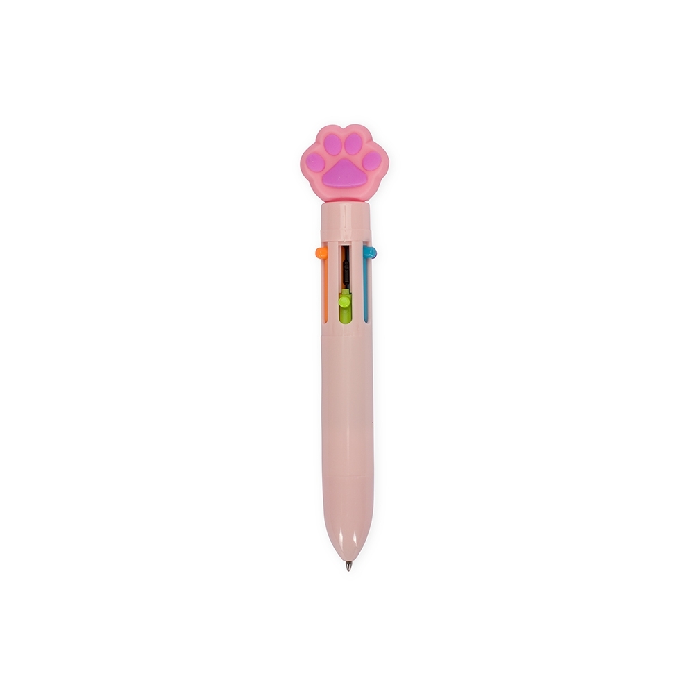Descrição: Caneta esferográfica mista com seis cargas coloridas de 1.0mm e acionamento por clique. Sua construção em plástico e enfeite no formato de patas garantem uma escrita suave e precisa com um toque de estilo único.