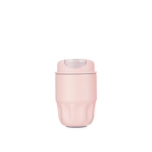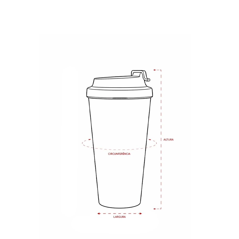 Copo em inox 304 com revestimento externo em polipropileno (PP) e capacidade para até 480ml. Apresenta tampa rosqueável em PP com protetor para o bocal. Acompanha alça em nylon com detalhe em couro sintético para transporte.