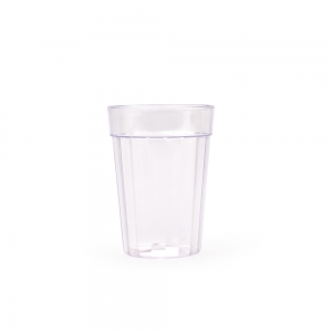 Copo feito em plástico PS cristal transparente com capacidade de até 450ml.