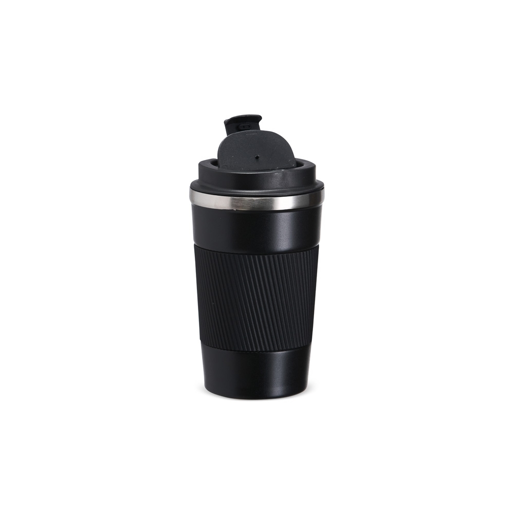 Descrição: Copo térmico em inox 304 com pintura eletrostática, base antiderrapante e capacidade máxima de 350ml. Possui estrutura de parede dupla e vedação a vácuo, permitindo a conservação da temperatura de líquidos por mais tempo. Conta ainda com tampa rosqueável em plástico com trava protetora no bocal e luva removível em silicone.