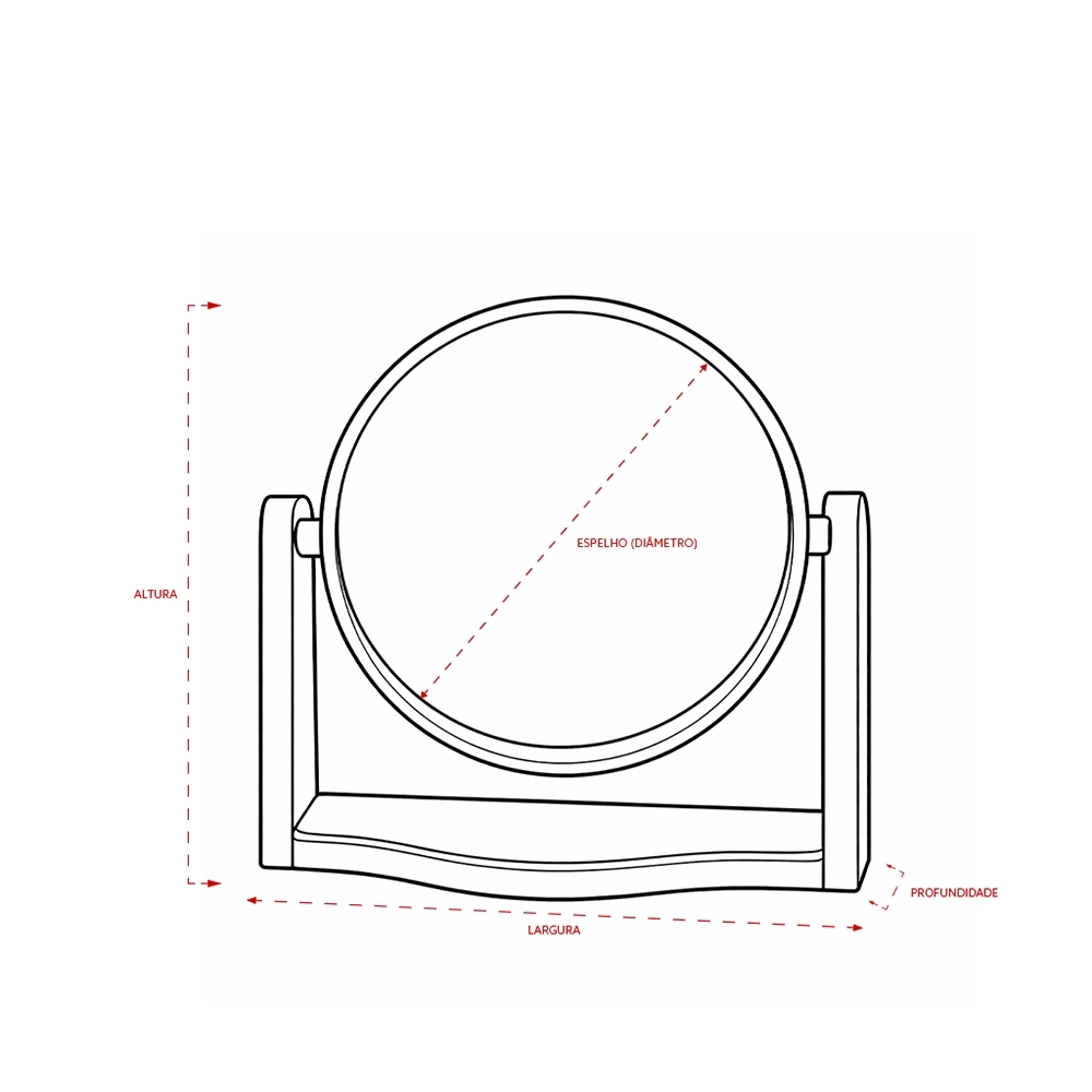 Espelho de Mesa Redondo Plástico.
