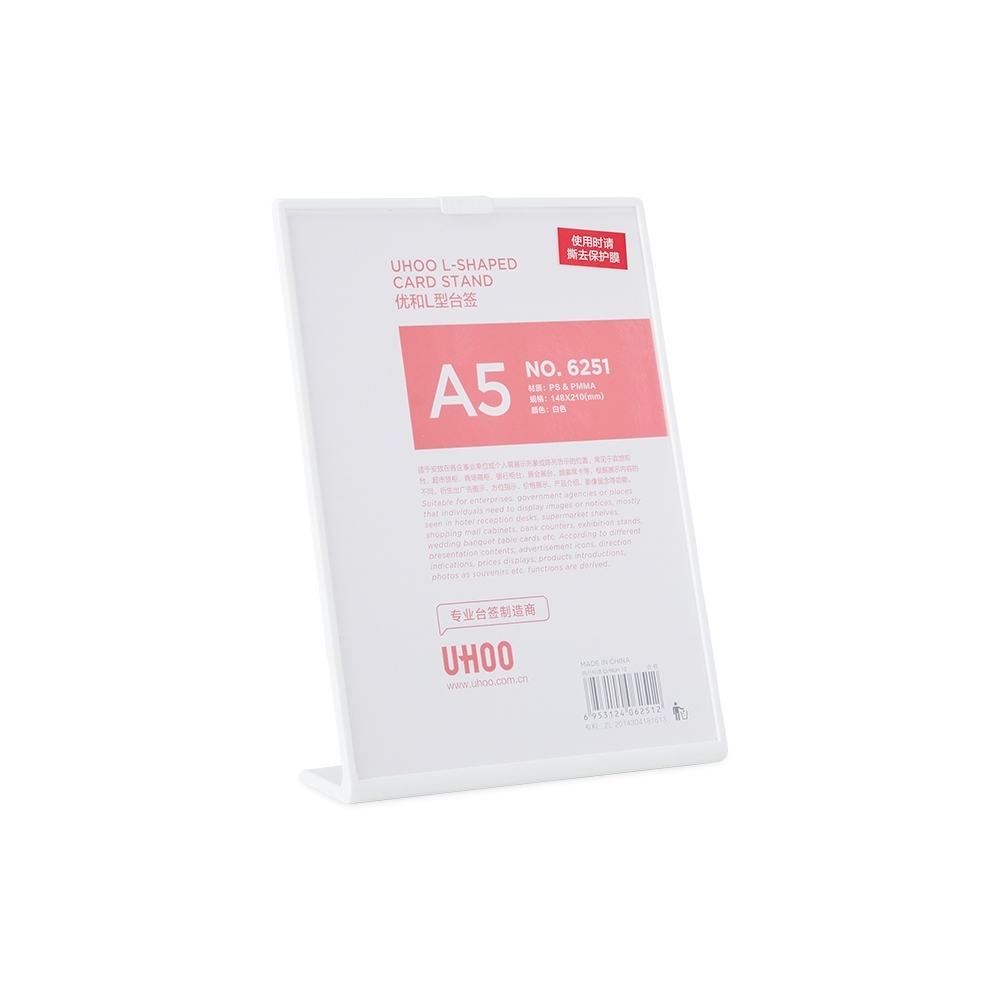 Descrição: Expositor porta retrato A5 feito em poliestireno com placa acrílica.