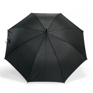 Descrição: Guarda-chuva de poliéster com abertura automática, estrutura metálica com 16 varetas e pegador em madeira.