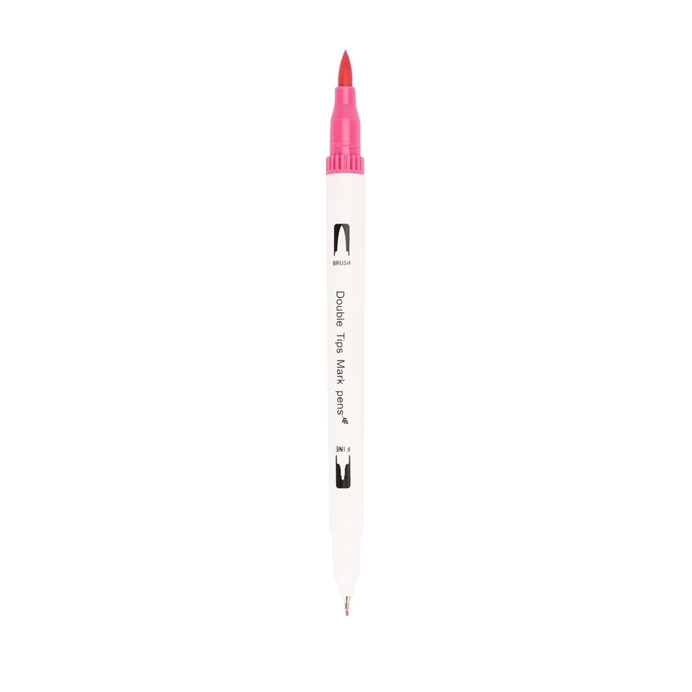 Descrição: Kit composto por 100 canetinhas coloridas em plástico, tinta atóxica à base de água e pontas duplas: uma fina e outra em formato de pincel. Acompanha estojo plástico com fechamento em botões e alça para transporte.