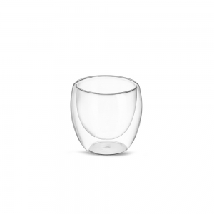 Kit com seis copos de vidro com capacidade máxima de 50ml cada.