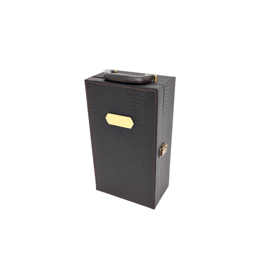 Descrição: Kit vinho 4 peças em maleta de couro sintético texturizada. Contém saca-rolhas metálico, bico condutor com tampa, cortador de lacre e wine collar. Maleta com alça, trava de segurança e plaquinha plástica fixa com fita dupla face. Área interna revestida de veludo com suportes de nylon com velcro e duas repartições para garrafas.