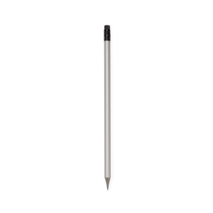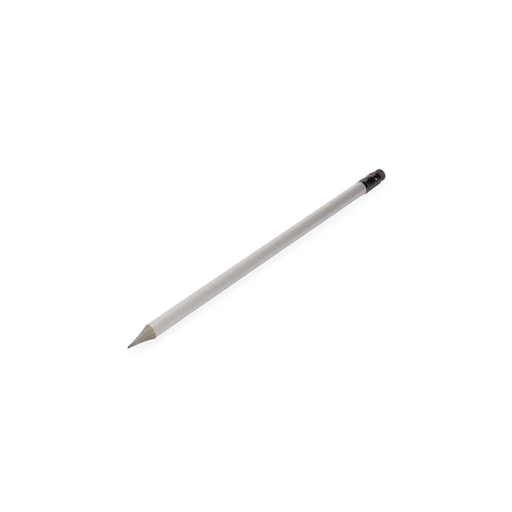 Descrição: Lápis de corpo redondo em madeira com grafite preto HB e uma borracha na ponta.