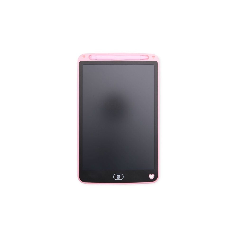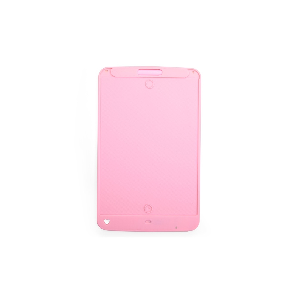 Lousa mágica em plástico com formato de tablet. Possui botão para apagar o conteúdo da tela e porta-caneta integrado à moldura. Acompanha caneta própria para uso na tela e bateria já acoplada ao brinquedo.
