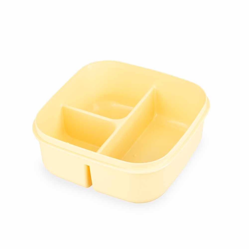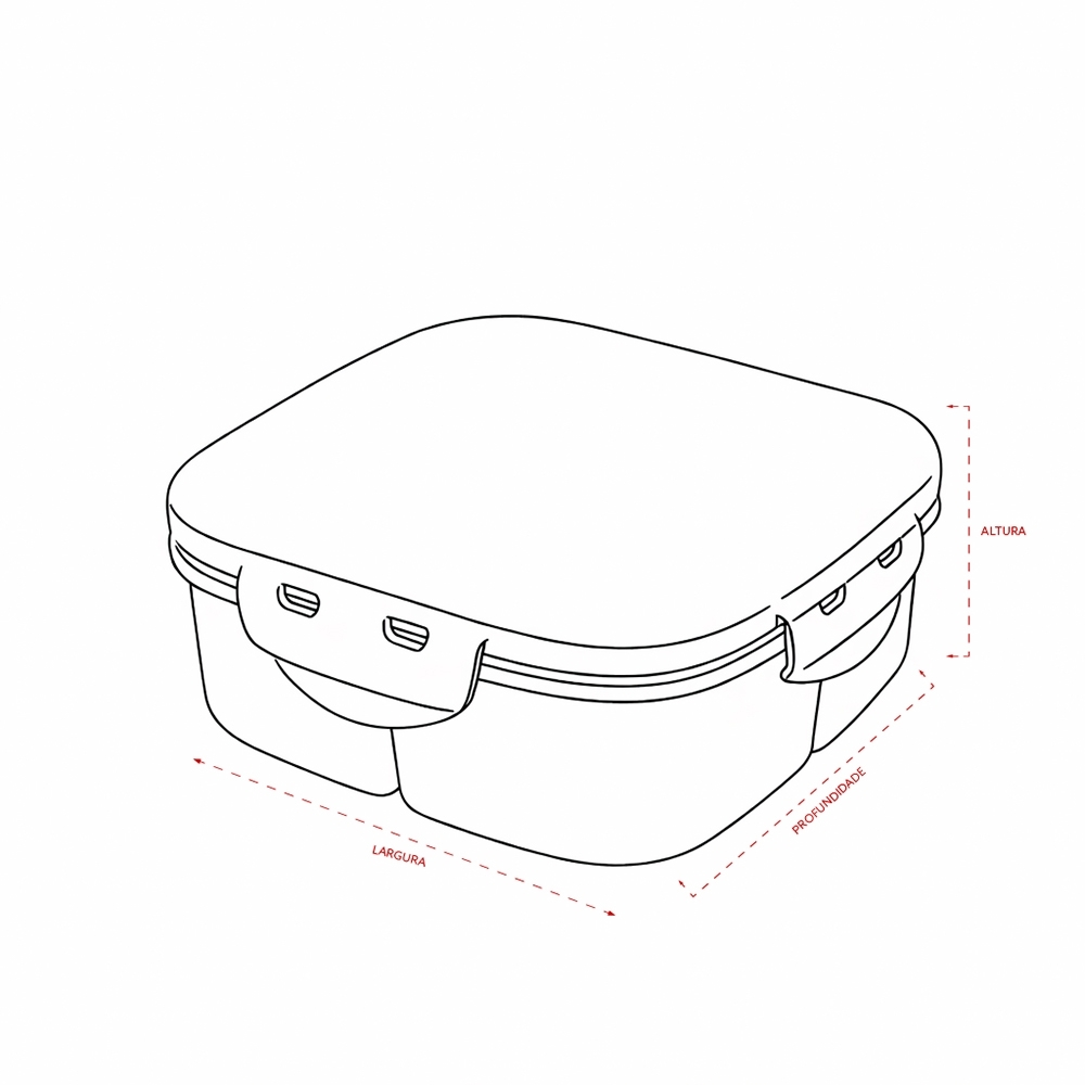 Descrição: Marmita feita em plástico polipropileno (PP) livre de BPA com capacidade para até 1,05L. Possui tampa com travas laterais e três divisórias internas.