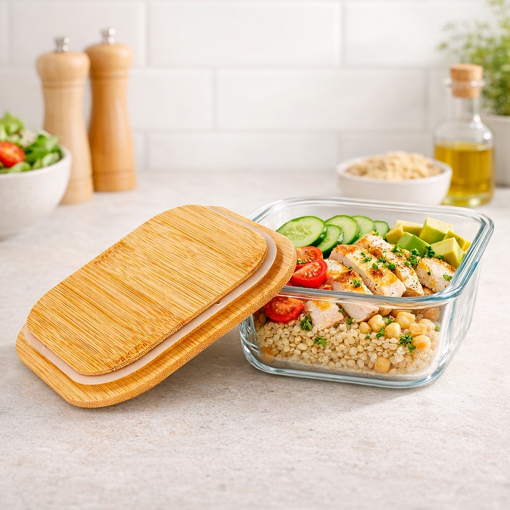 Descrição: Marmita em vidro borossilicato com capacidade para at. Possui tampa hermética em bambu. Aviso:  Retire a tampa da marmita antes de levá-la ao micro-ondas. Marmita versátil para freezer e micro-ondas.