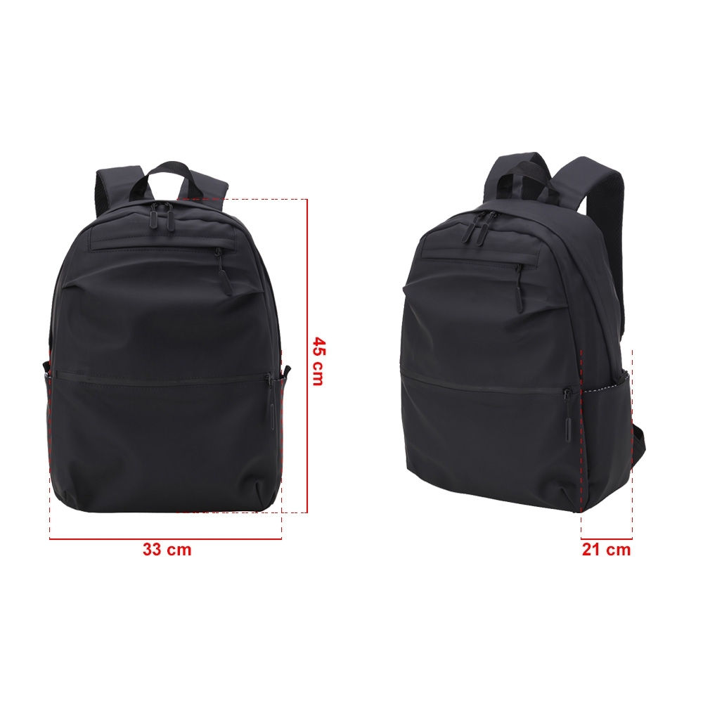 Mochila de couro sintético impermeável de 30 litros com três compartimentos, sendo o principal com bolso para notebook 15,6. Com bolsos laterais e interior listrado, a mochila possui alça para encaixe em malas de viagem, alça de mão e alças para as costas com revestimento espumado. Acompanha plaquinha metálica.
