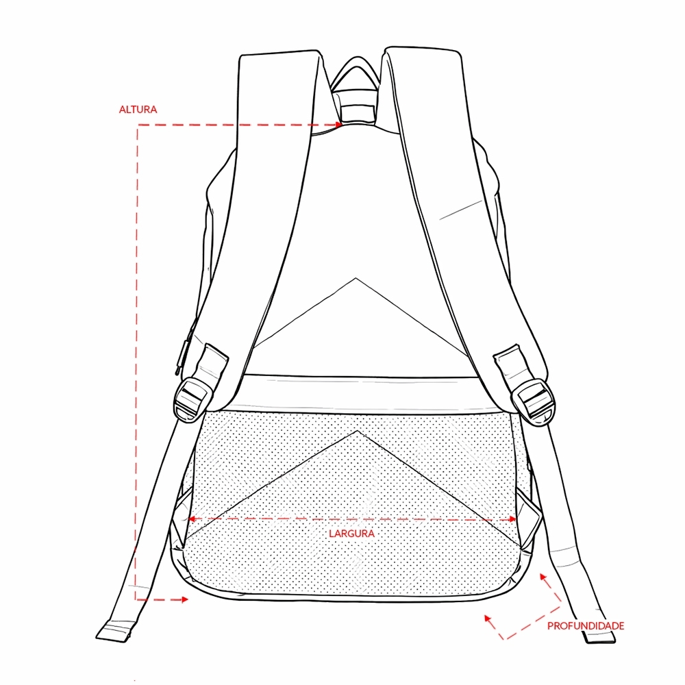 Mochila impermeável em Oxford com revestimento em PU, capacidade máxima de 23 litros e fechamento em zíper com puxadores em nylon e plástico. Possui compartimento principal com divisória para notebooks de até 17,3 polegadas. Conta com compartimento frontal e dois bolsos laterais em malha com elástico, alça para encaixe em malas de viagem e revestimento em espuma respirável nas costas, nas alças de ombro e na alça superior de mão.