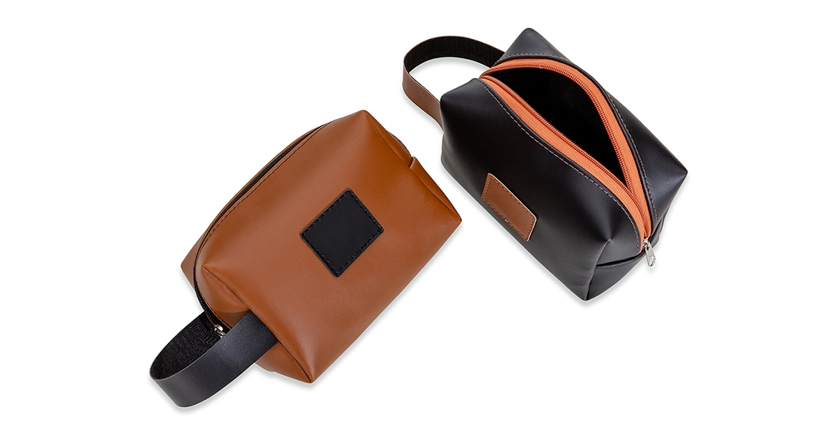Descrição: Nécessaire de couro sintético bidins com alça para transporte, possui plaquinha frontal para personalização e área interna da necessaire revestida de nylon.