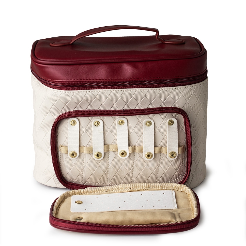 Descrição: A combinação perfeita entre delicadeza e qualidade, esta nécessaire agradará até mesmo as pessoas mais exigentes. Feita de PU resistente à água, cada detalhe foi meticulosamente pensado para torná-la prática: um compartimento principal com 5 divisórias para pincéis e amplo espaço para diversos cosméticos, além de um compartimento frontal com vários organizadores para joias como anéis, brincos e colares. Com zíperes de puxadores dourados, cada detalhe torna esta nécessaire uma peça sofisticada e funcional.