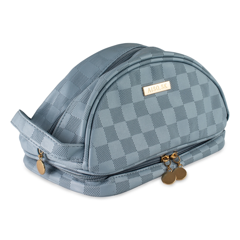 Um acessório sofisticado e versátil para itens essenciais de beleza e cuidadoi! Feita em couro sintético PU de alta qualidade, esta nécessaire combina elegância e funcionalidade com um design moderno e detalhes em padrão xadrez. Perfeita para organizar maquiagens e produtos de higiene, ela é à prova dágua e possui zíperes individuais para fechar os compartimentos superior e inferior com segurança. Além disso, sua alça prática facilita o transporte, tornando-a ideal para o dia a dia ou viagens.