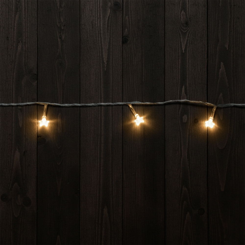 Pisca-pisca com iluminação em LED e voltagem de 127V. Conta com 100 lâmpadas distribuídas ao longo aproximadamente 10 metros de cabo, além de botão de acionamento de oito modos de efeitos de luz.