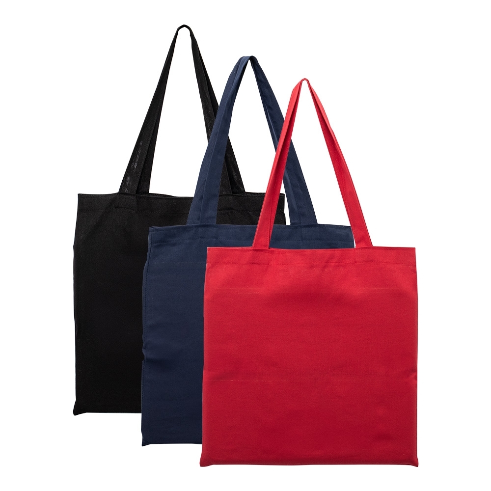Sacola de algodão com alças costuradas na parte interna.