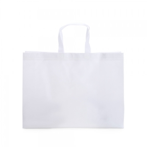 Sacola confeccionada em TNT com revestimento externo laminado e duas alças costuradas.