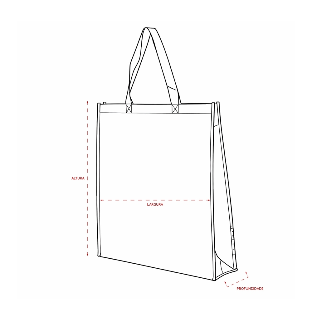 Descrição: Sacola confeccionada em TNT com revestimento externo laminado e duas alças costuradas.